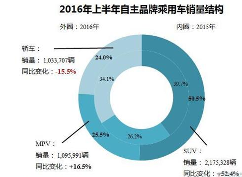 2016年上半年自主乘用车销量分析:SUV拉动增长...